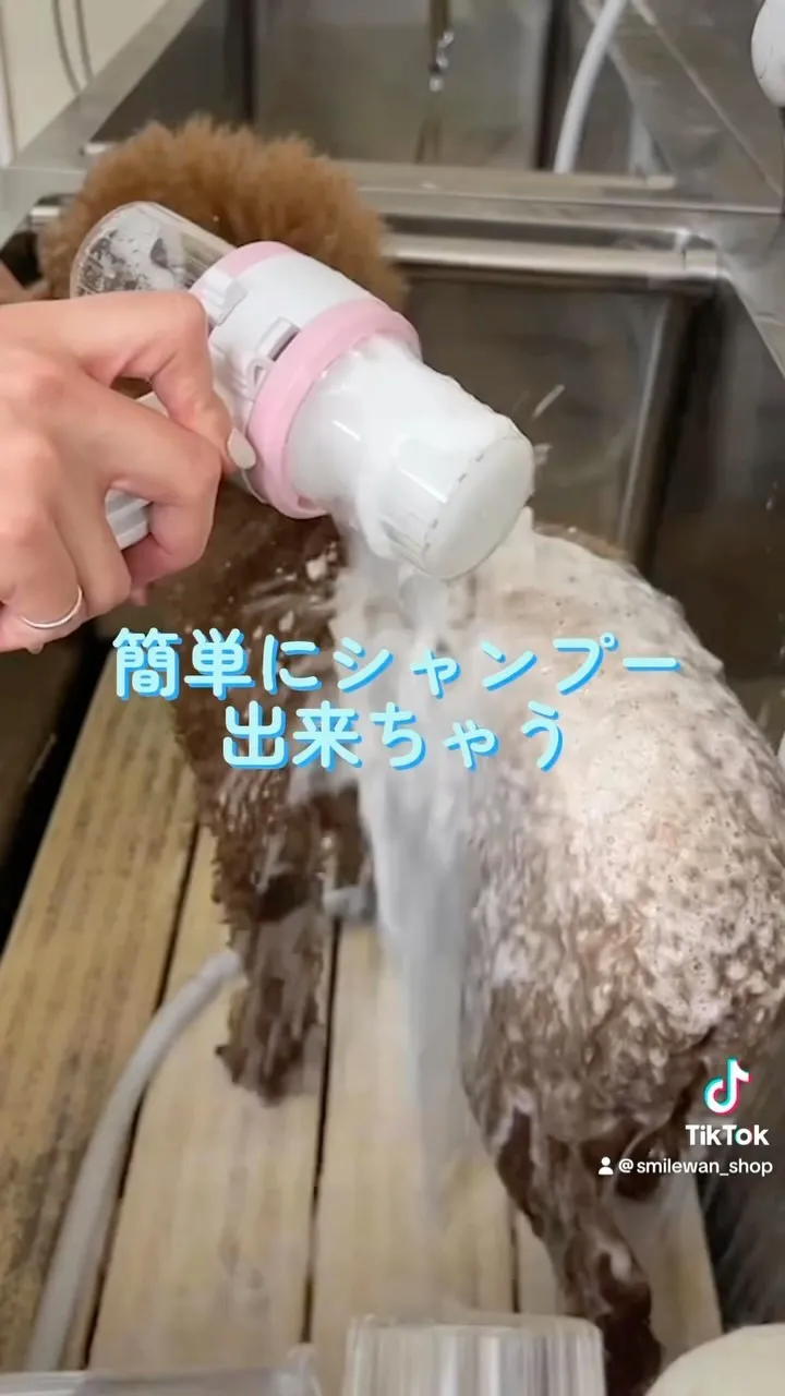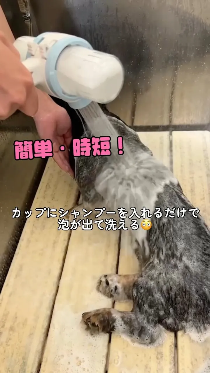 泡で出てくるシャワーヘッド🚿【shawany(シャワニー)】はご自宅のシャワーヘッドを交換するだけで簡単・時短にわんこをシャンプー出来るお風呂グッズです✨🫧トリミングサロンでもご使用いただいているプ…