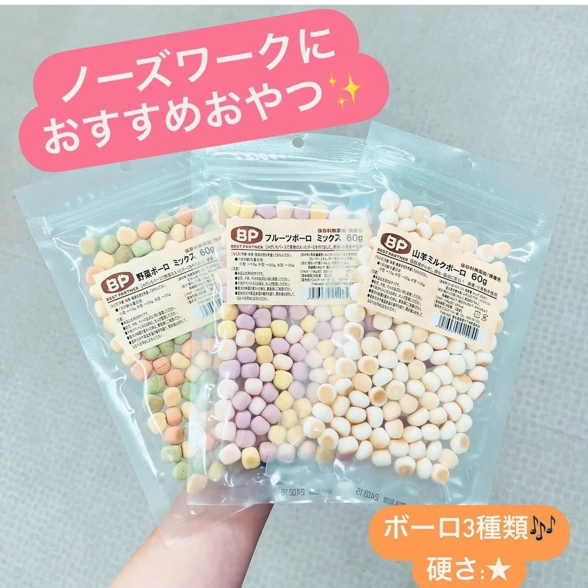 今日のオススメはボーロです! パピーちゃんから食べられるおやつ 雨の日などでおうちで退屈しているわんこにノーズワークでエネルギーの発散していきましょう その際にオススメなのがボーロです!ちぎる…